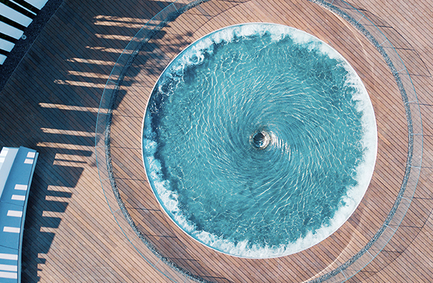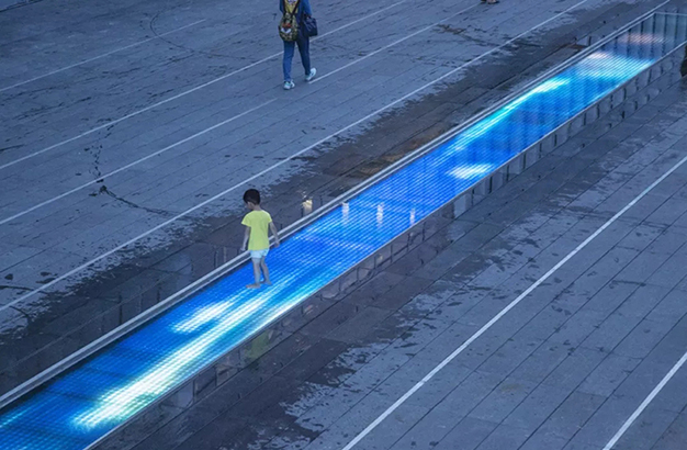 水本無形,它的物理特性讓它能輕易地跟隨容器而呈現(xiàn)不同的面貌。獨(dú)特的延展性使得水能呈現(xiàn)無以計數(shù)的不同效果。燈光的布置,介質(zhì)的紋理,顏色和動態(tài)都能給水帶來無窮的變化。